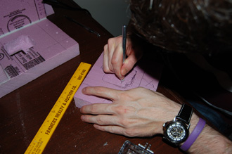 Closeup of me cutting out the foam.